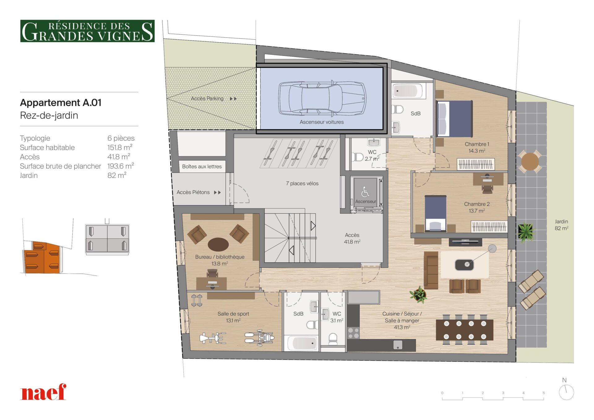 | A.01 | 6 | Rez | 151.8 m2 | 83.0 m2 | vendu | |||||
