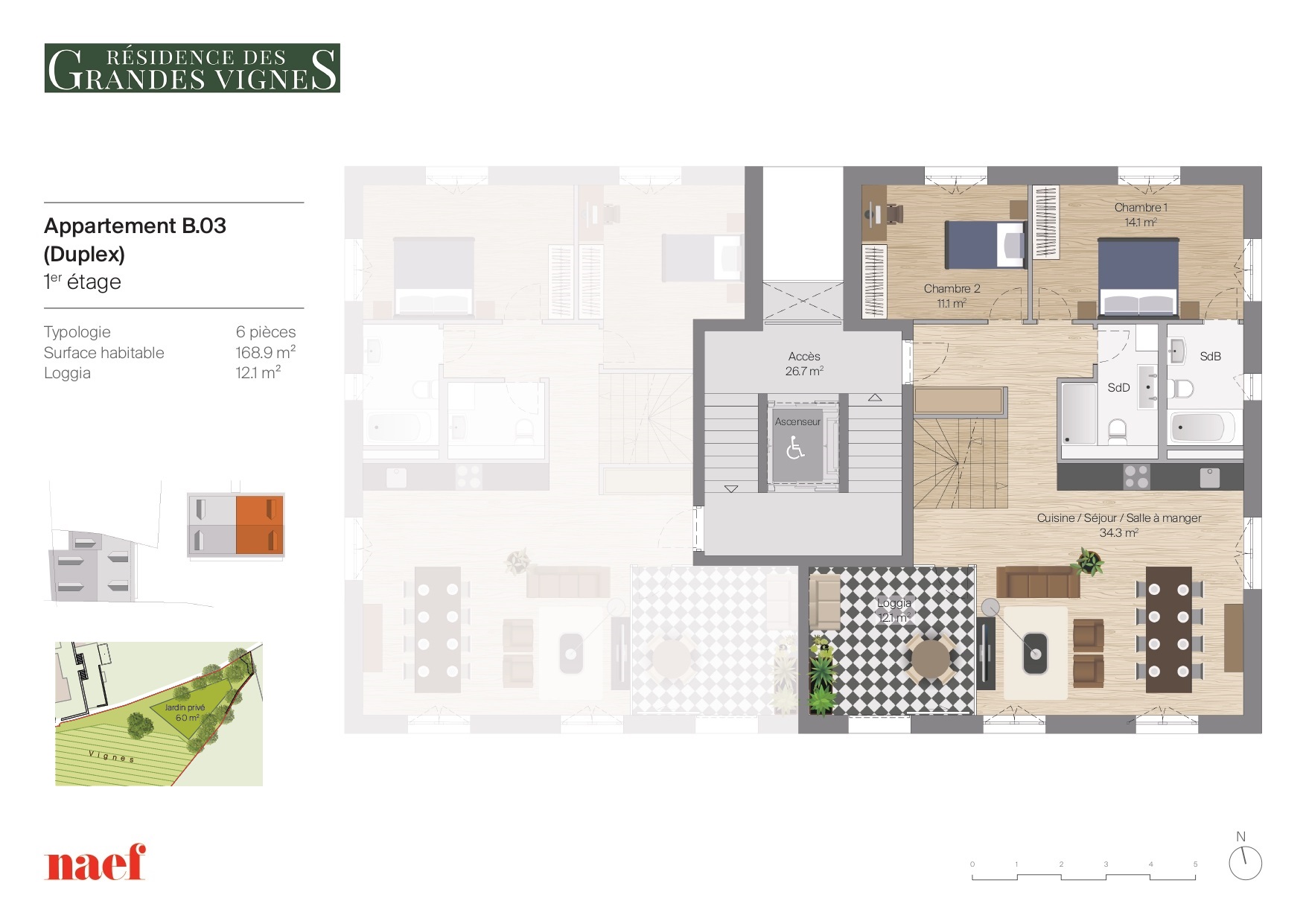 | B.03 | 6 | C+1 | 169.0 m2 | 60.0 m2 | 219 m2 | vendu | ||||