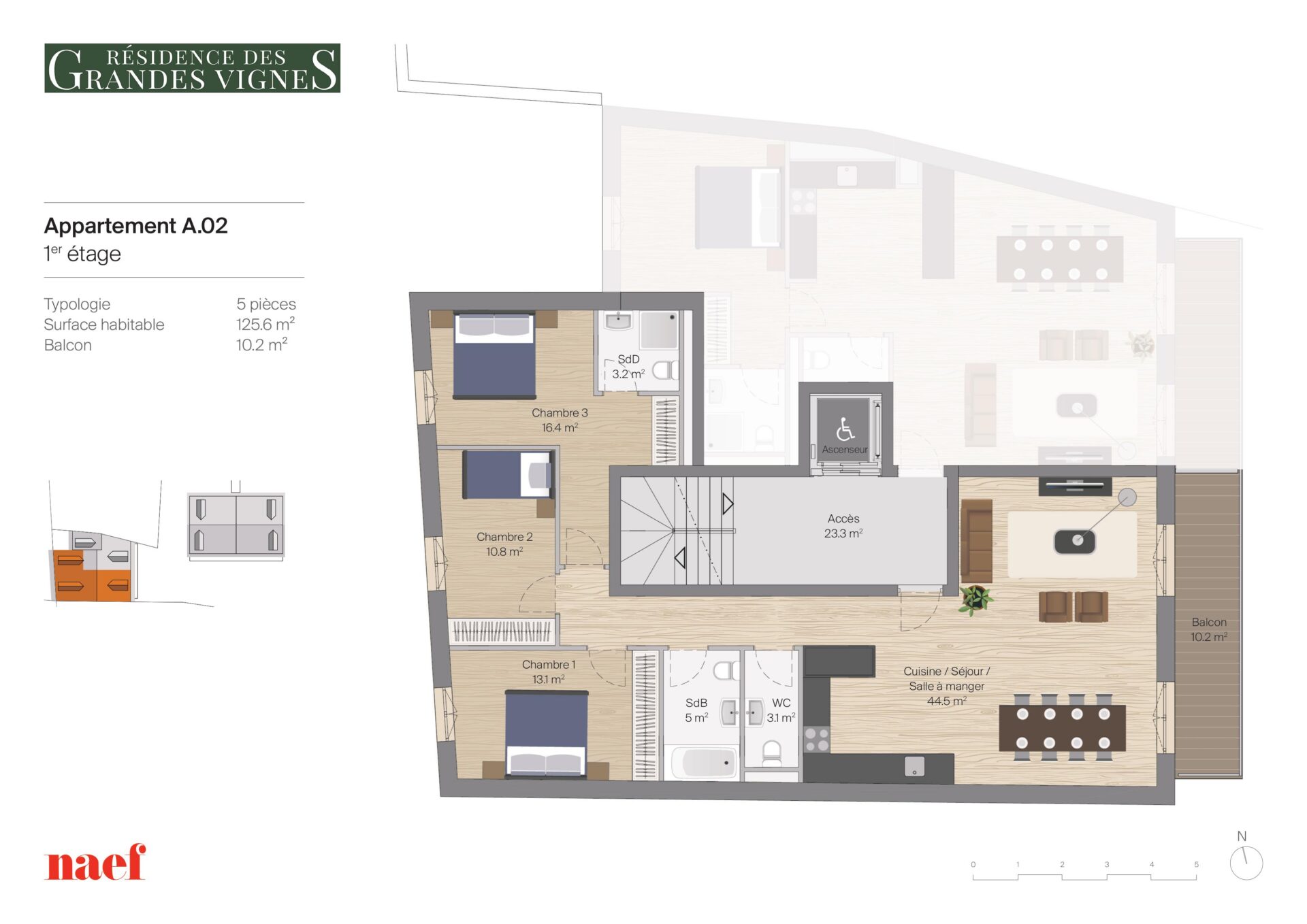 | A.02 | 5 | 1er | 125.6 m2 | 10.2 m2 | vendu | |||||
