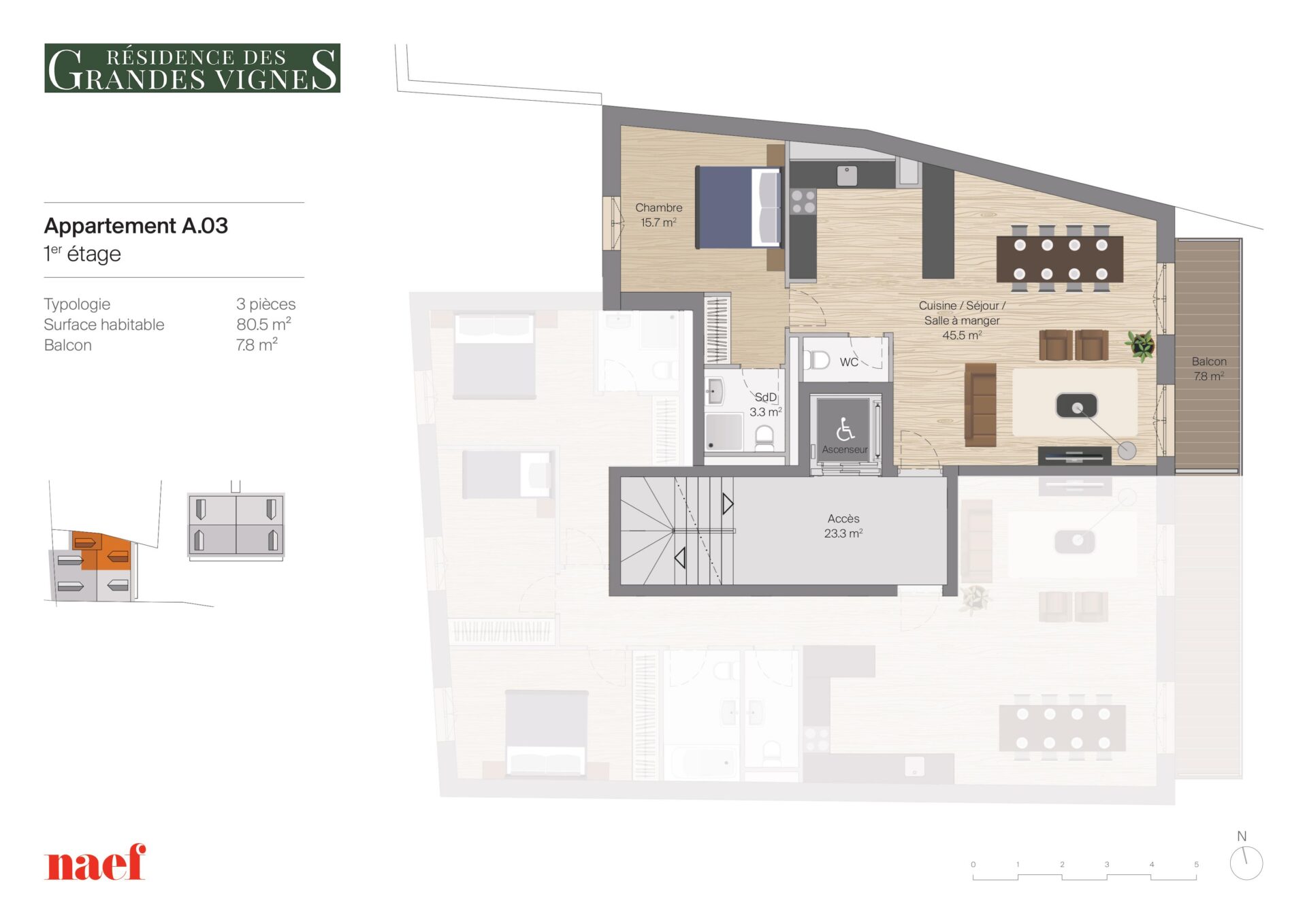 | A.03 | 3 | 1er | 80.5 m2 | 7.8 m2 | vendu | |||||