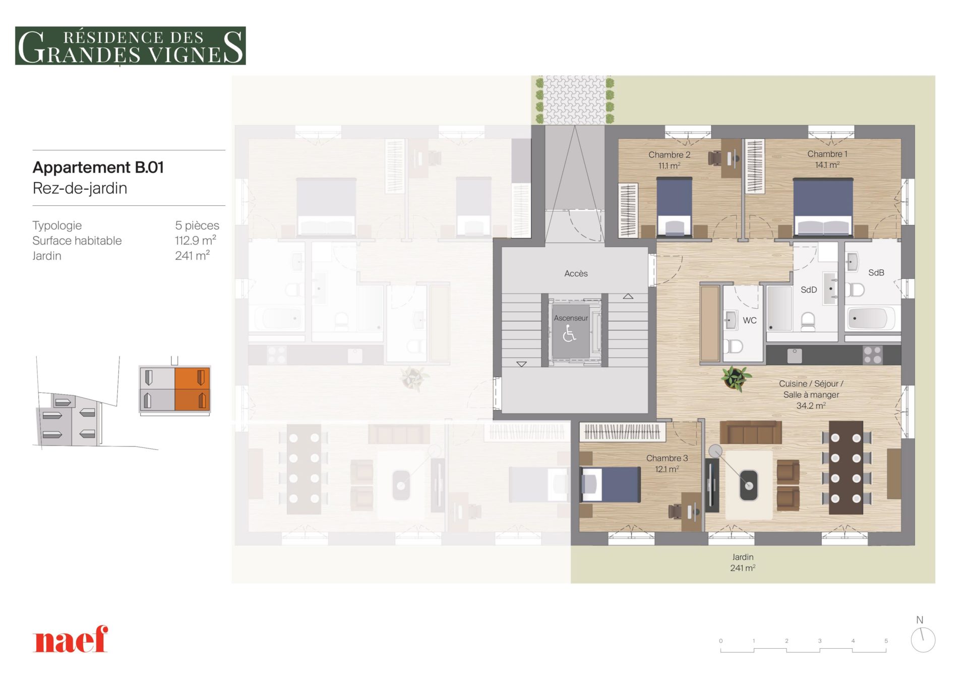 | B.01 | 5 | Rez | 112.9 m2 | 241.0 m2 | vendu | |||||