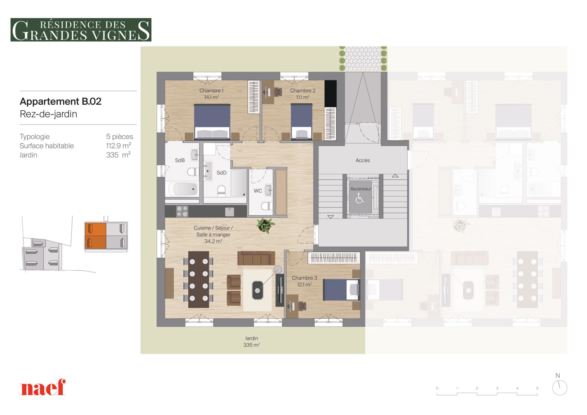 | B.02 | 5 | Rez | 112.9 m2 | 335.0 m2 | vendu | |||||